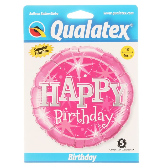 Шар фольгированный 18" "С Днем рождения" искры, розовый