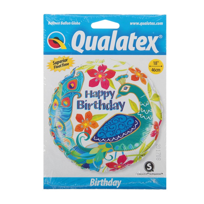 Шар фольгированный 18" "С днем рождения Павлин" Q