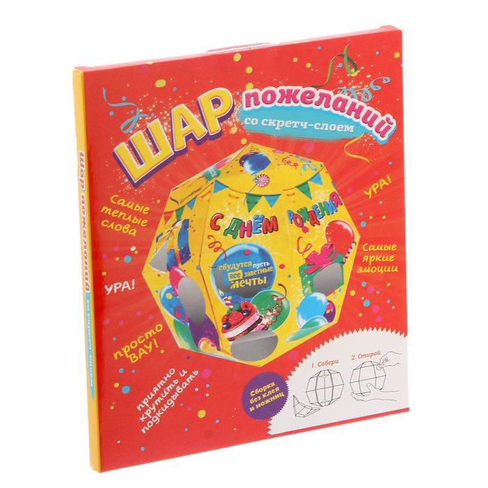В любой непонятной ситуации… обращайся к шару гаданий! Подумай о вопросе, который нужно решить, сотри защитный слой на одном из окошек и получи ответ! Оригинальное изделие легко собрать без клея и ножниц, инструкция на упаковке.