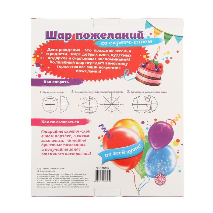 Шар гаданий со скретч-слоем "С Днем рождения"