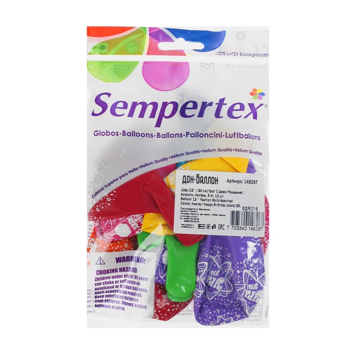 Шар латексный 12" "Ура! С днем рождения", пастель, 5 ст, набор 12 шт, МИКС