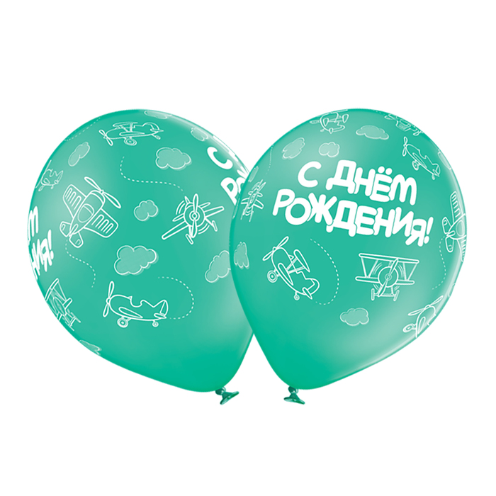Шар латексный 14" "С днем рождения Самолеты", пастель, 25 шт., МИКС
