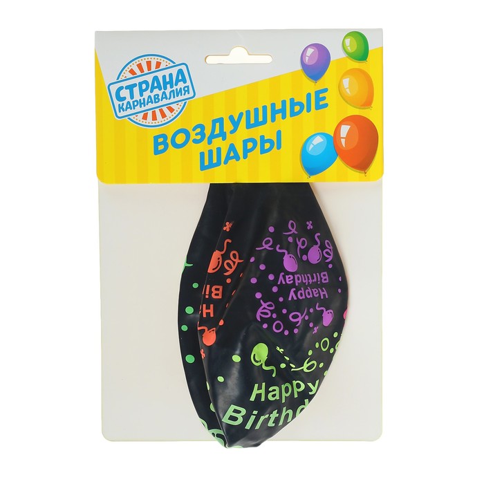 Шар латексный 17" "Happy Birthday конфетти неон", 1 шт., цвет черный
