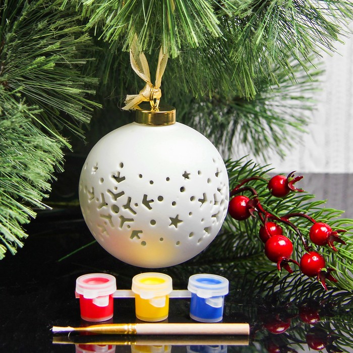 Шар новогодний под раскраску "Узоры №2" с подвесом, краска 3 цвета по 2 мл, кисть