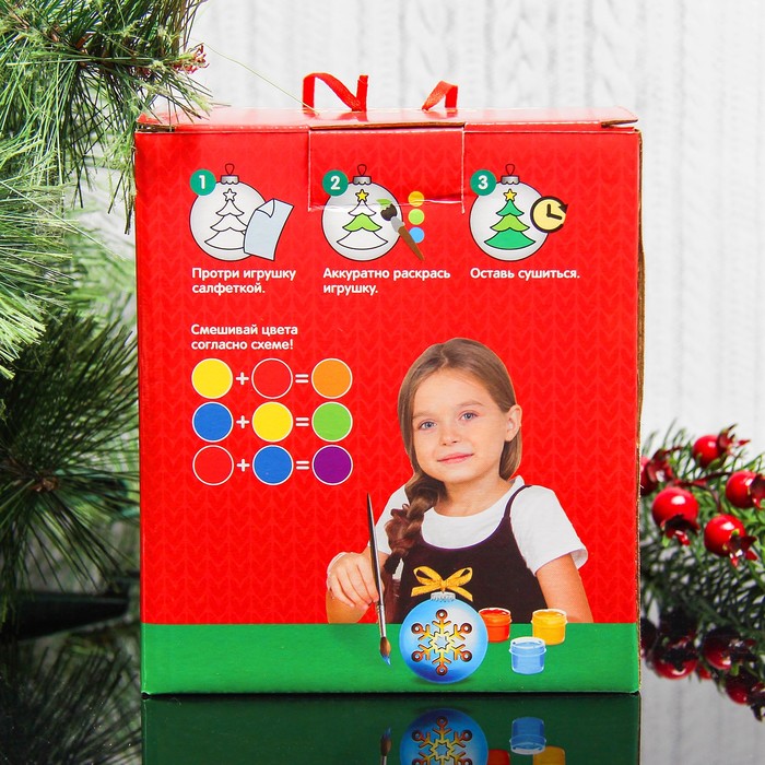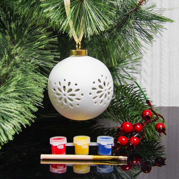 Шар новогодний под раскраску "Узоры №5" с подвесом, краска 3 цвета по 2 мл, кисть