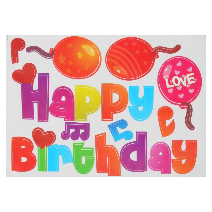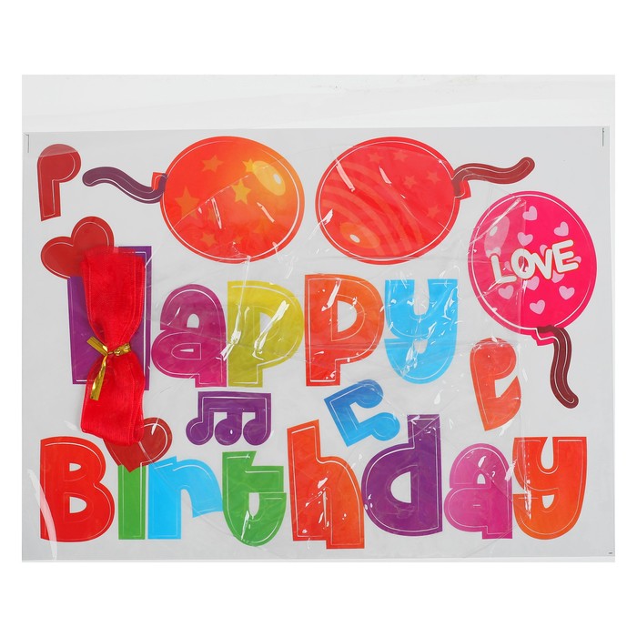 Шар полимерный 16" "С днем рождения" прозрачный с наклейками нотки, лента, 1 шт