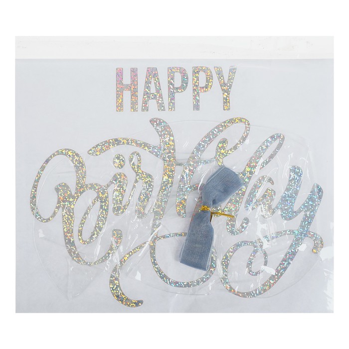 Шар полимерный 16" "С днем рождения" прозрачный с наклейкой серебро, 1 шт