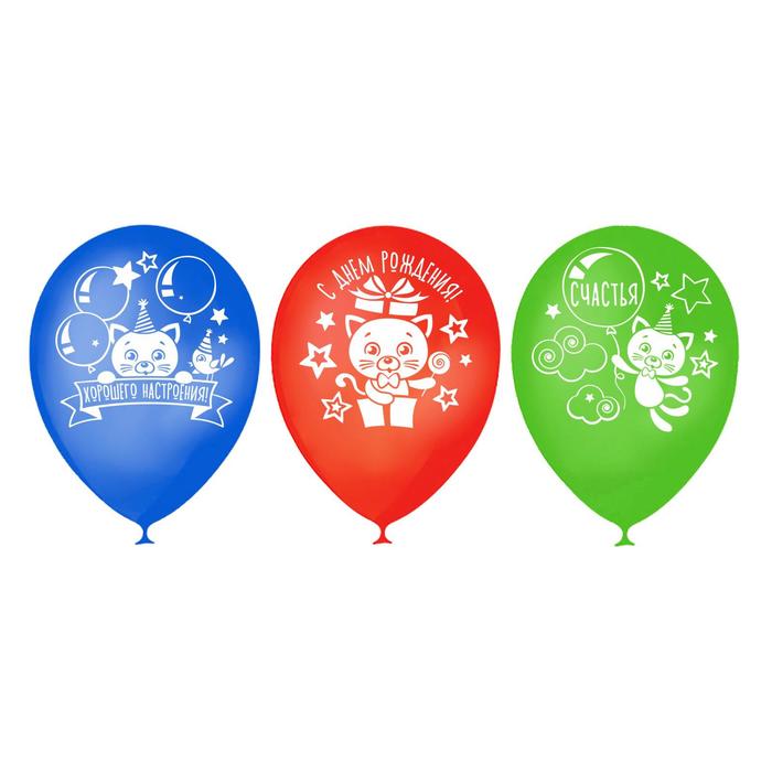 Шар воздушный 12" "День рождения", котёнок, 1-сторонний, набор 25 шт., МИКС