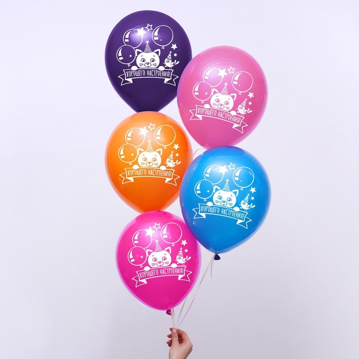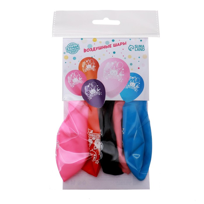 Шар воздушный 12" "День рождения", котёнок, 1-сторонний, набор 5 шт., МИКС