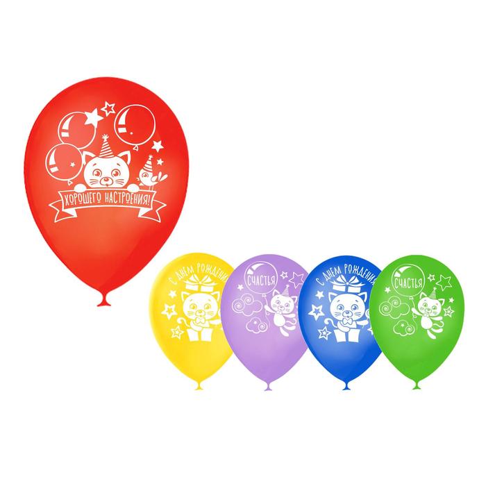 Шар воздушный 12" "День рождения", котёнок, 1-сторонний, набор 50 шт., МИКС