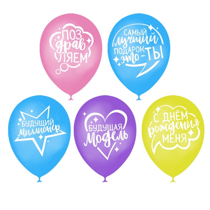 Шар воздушный 12" "Детский день рождения", набор 50 шт., цвета МИКС
