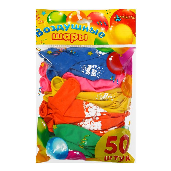 Шар воздушный 12" "Лисичка + С днём рождения", лисичка + звёзды, 2-сторонний, набор 50 шт., МИКС