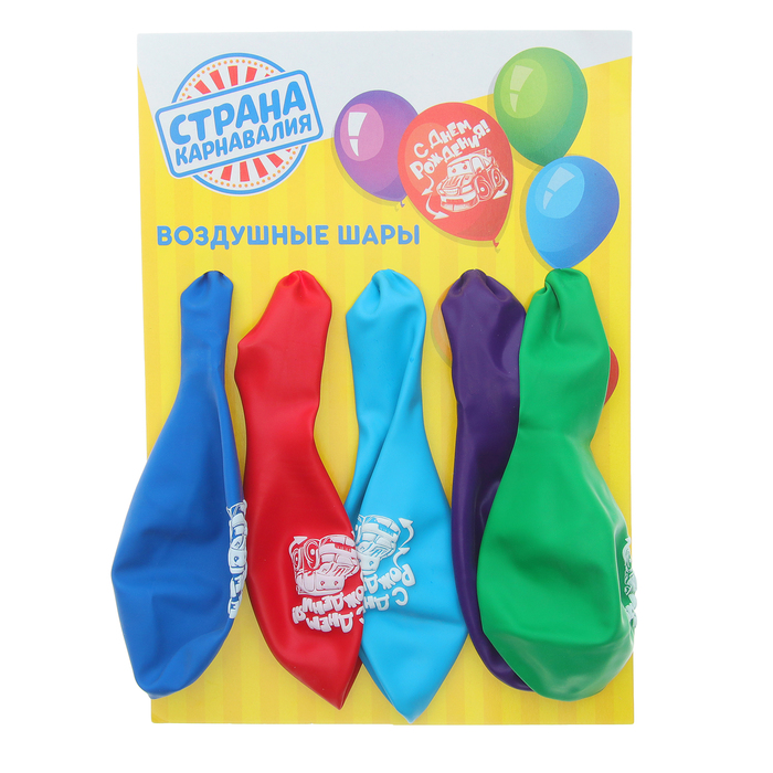 Шар воздушный 12" "С днём рождения", тачка, набор 5 шт., МИКС