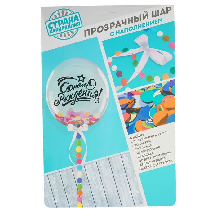 Шар воздушный прозрачный 18" с конфетти и гирляндой-кружочками "Яркое настроение"