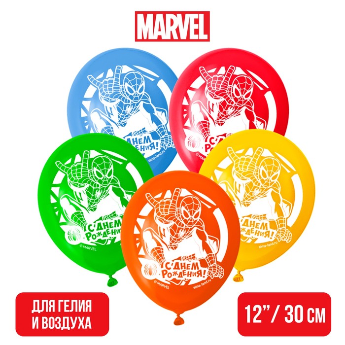 Шар воздушный "С днем рождения" Человек Паук (набор 5 шт) 12 дюйм