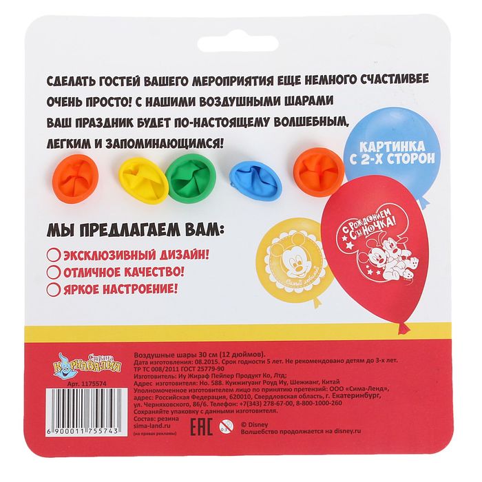 День рождения — любимый праздник всех ребят! А кроме него есть ещё Новый год, 8 Марта, конец или начало учебного года и много других поводов для того, чтобы сделать день особенным для маленькой принцессы и юного героя! Всем известные и любимые герои мультфильмов создадут по-настоящему радостную обстановку на детский праздник и превратят его в сказку. Оформите комнату отдельными украшениями или соберите целую композицию — шары с одноцветным нанесением с двух сторон никого не оставят равнодушным. Изделия поставляются в удобной упаковке.