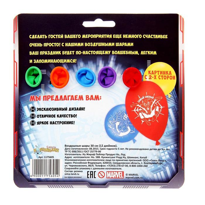 Шар воздушный "Самый смелый" Человек Паук (набор 5 шт) 12 дюйм