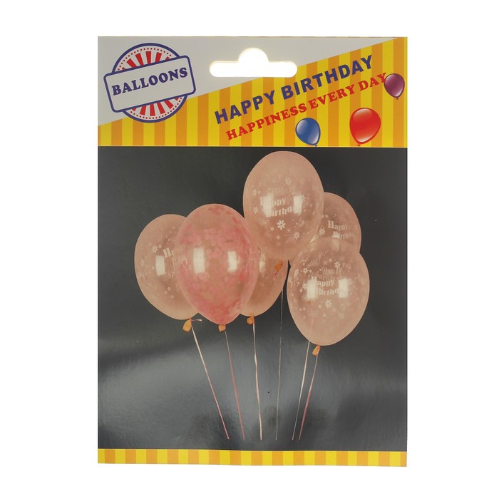 Шары латексные 12" "С днём рождения!", розовое конфетти, набор 6 шт.
