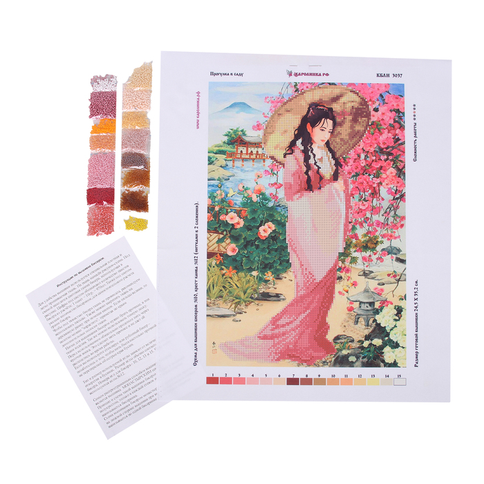 Схема для бисера и креста на габардине "Прогулка в саду"