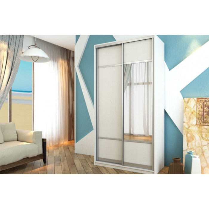 Шкаф-купе 2-дверный "Бостон", 1100х540х2150 мм, с зеркалом и полками, цвет белый