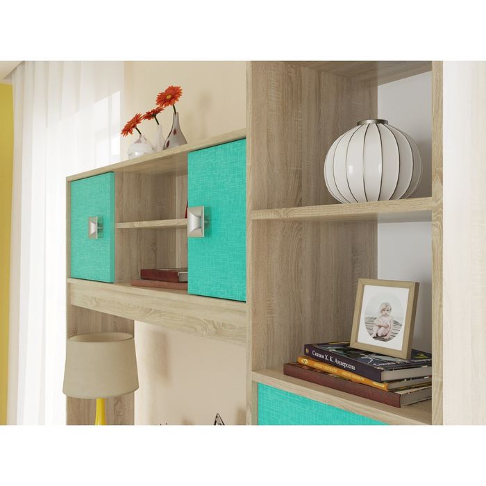 Шкаф стеллаж с дверкой СИТИ 410*355*1905 Дуб сонома/Аква