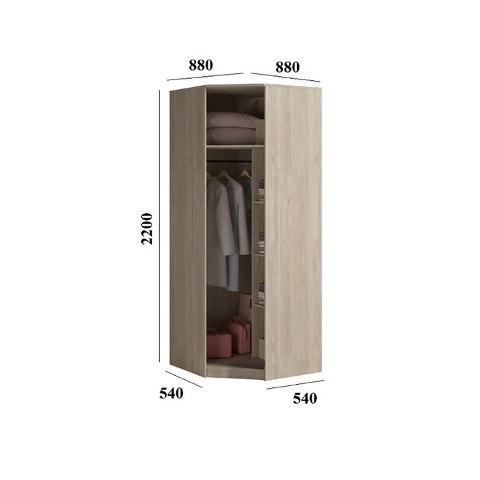 Шкаф угловой с зеркалом Светлана 2200х880х880 Дуб сонома/Белый