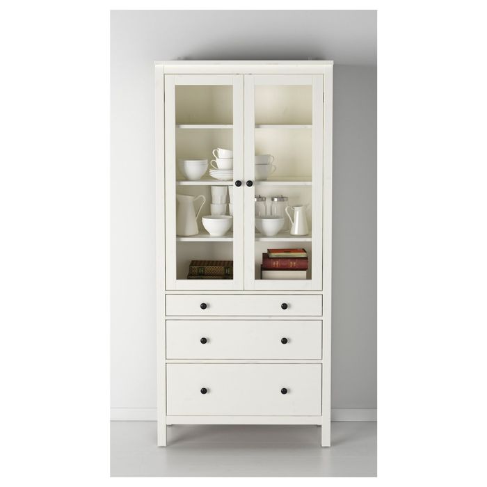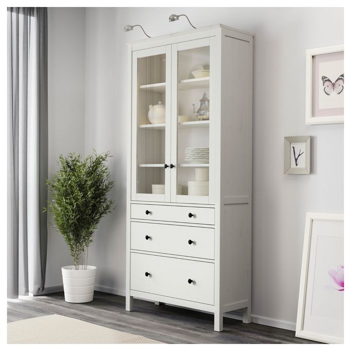 Шкаф-витрина с 3 ящиками, белая морилка ХЕМНЭС