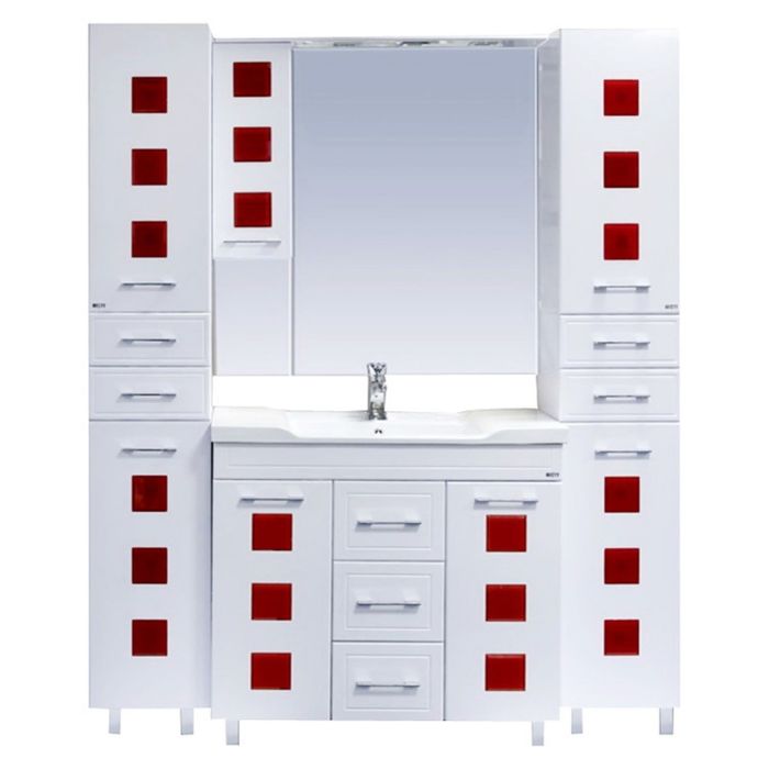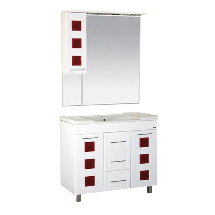 Шкаф-зеркало Misty "Кармен 90", левый, белая пленка, красное стекло