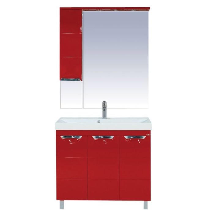 Шкаф-зеркало Misty "Петра 90", левый, с подсветкой, красная эмаль