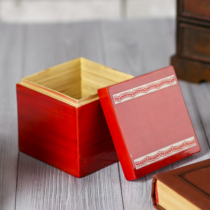 Добавьте в домашний интерьер яркий кубик! Оригинальная шкатулка бамбуковая "Красный лак", малая порадует не только простым и одновременно с этим стильным внешним видом, но и своим удобством: в нее можно положить любимые украшения или другие миниатюрные предметы, которые всегда должны быть под рукой. Шкатулка изготовлена из бамбука – легкого и одновременно с этим прочного материала. Украсьте стол или полку такой эффектной и удобной вещицей!