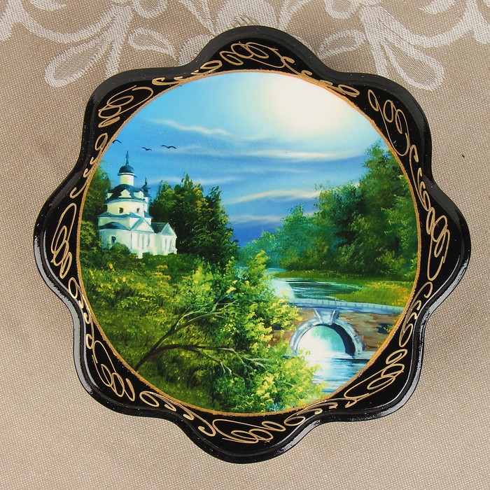 Шкатулка «Церковь у ручья», 16×16 см, лаковая минитюра