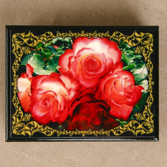 Шкатулка «Цветы 61», лаковая миниатюра, 8х10,5 см