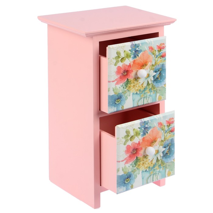 Шкатулка дерево 2 ящика "Цветы акварельные" розовая 24х11,5х14 см