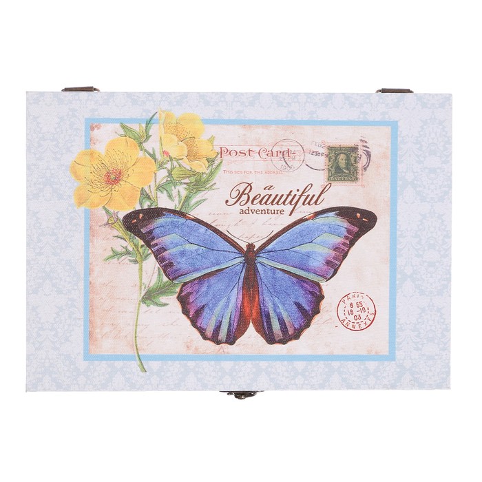 Шкатулка дерево "Бабочка и жёлтые анемоны" 5,5х24х17 см
