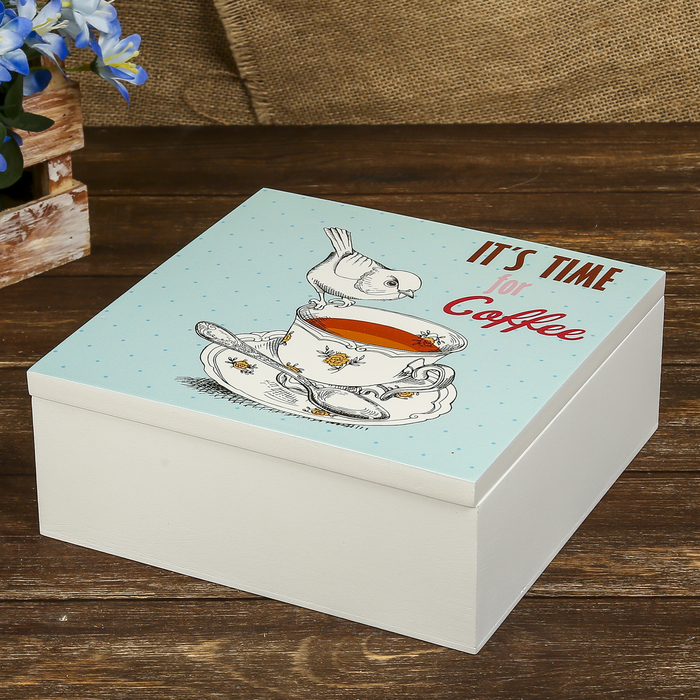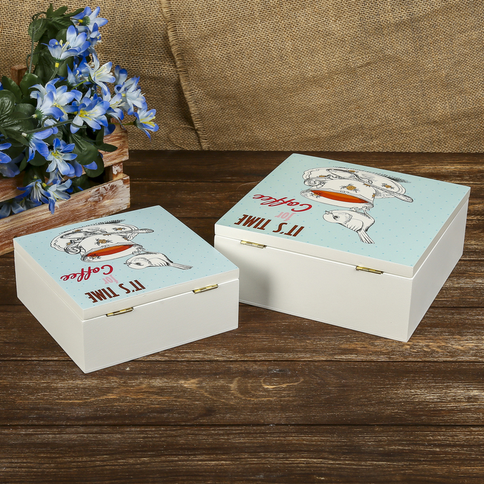 Шкатулка дерево "Чашечка чая и птичка" набор 2 шт 6,5х16х16 8,2х20,5х20,5 см