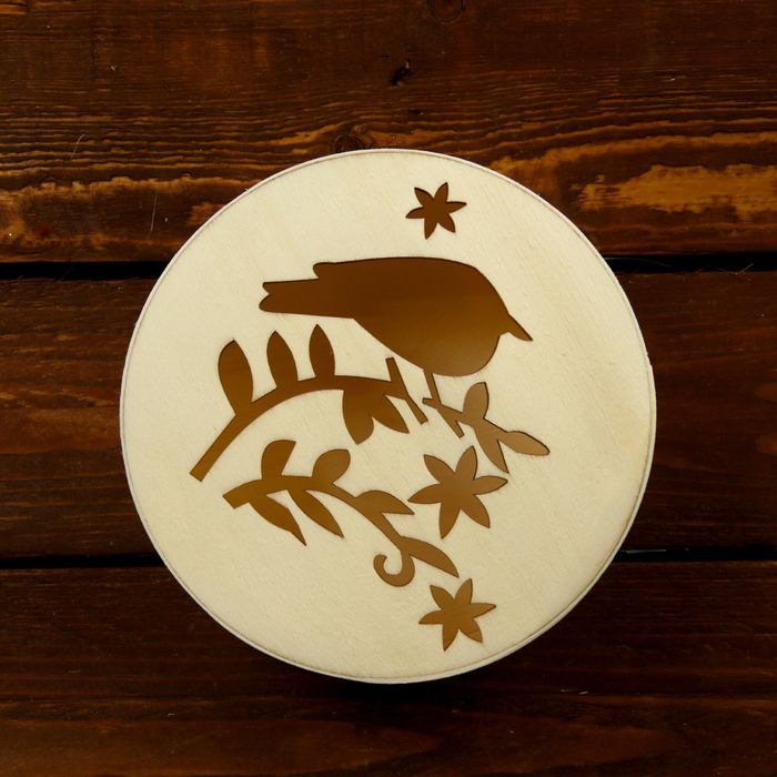 Шкатулка дерево для росписи круг "Птица на цветочной ветке" 4,2х13,5х13,5 см