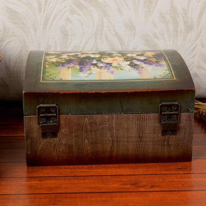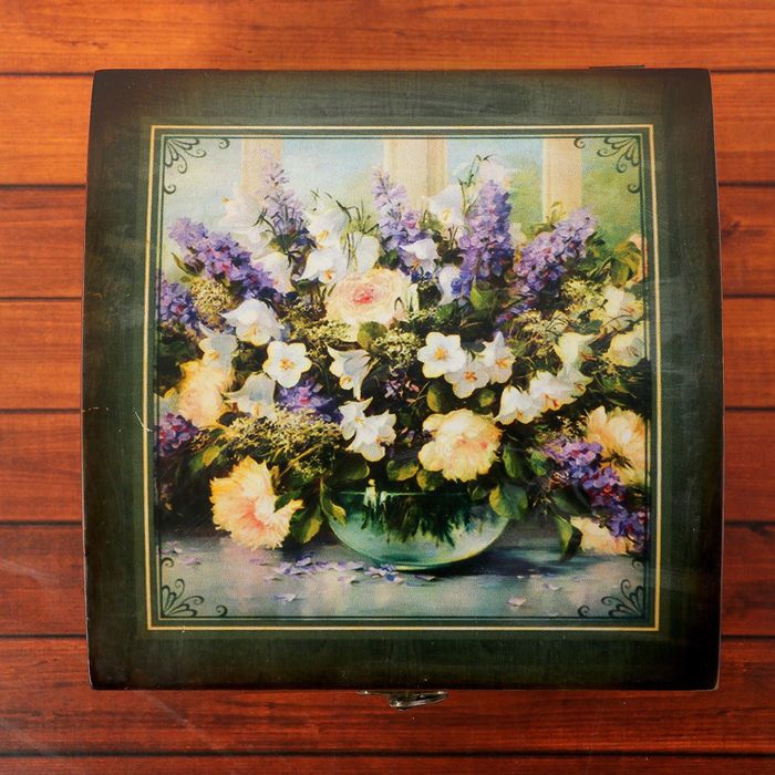 Шкатулка дерево лак "Букет с сиренью" 17,5х17,5х7,5 см