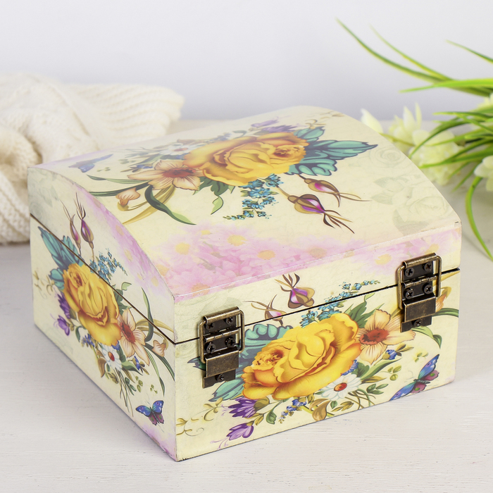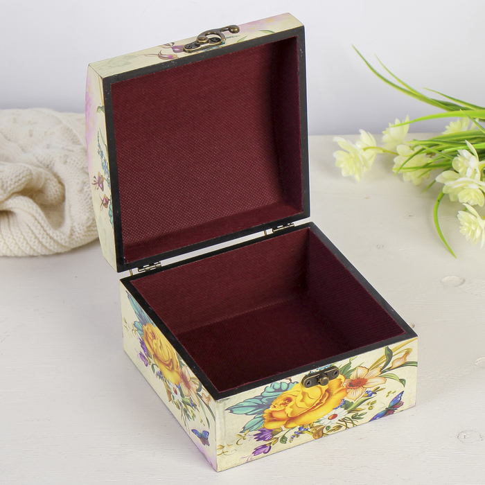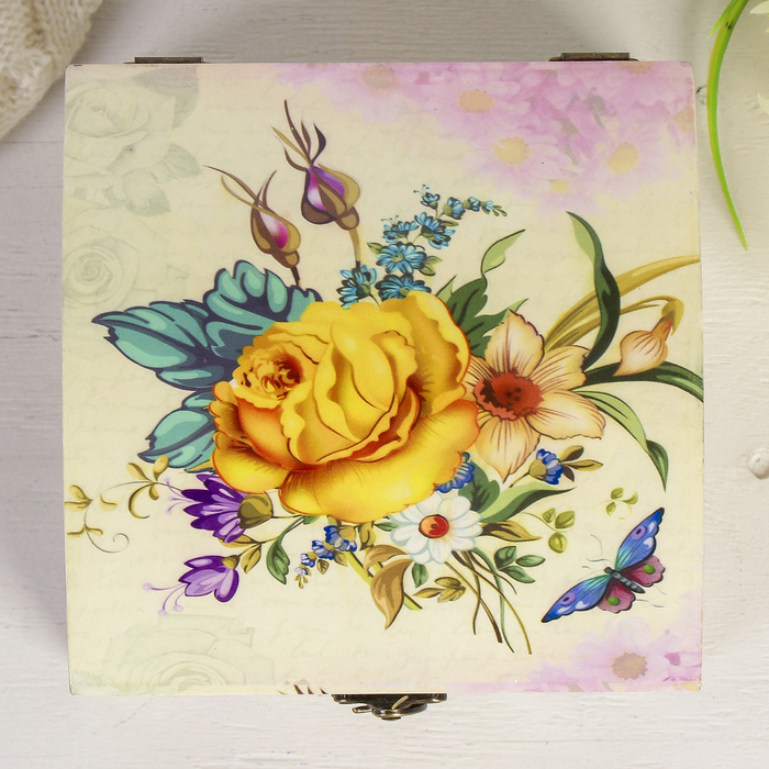 Шкатулка дерево лаковая "Букет любимой" 15х15х10 см