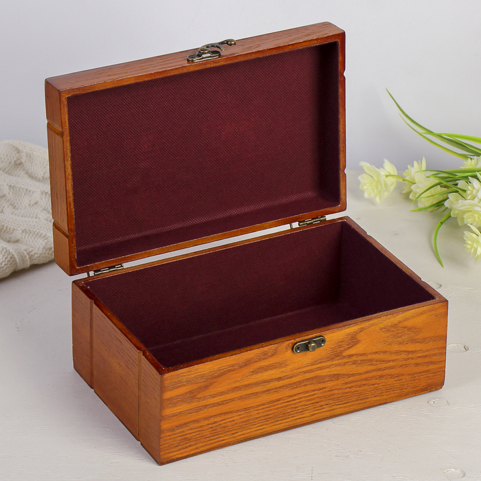 Классическая шкатулка, которая полностью покрыта лаком для сохранения текстуры дерева, эффектно дополнит интерьер и поможет поддержать порядок.