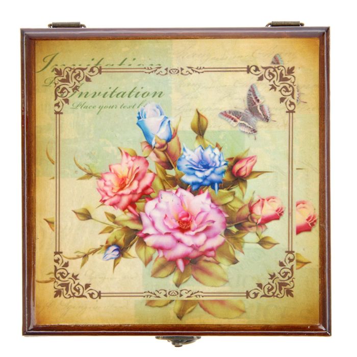 Шкатулка дерево лаковая "Композиция из роз" 18х18х8 см