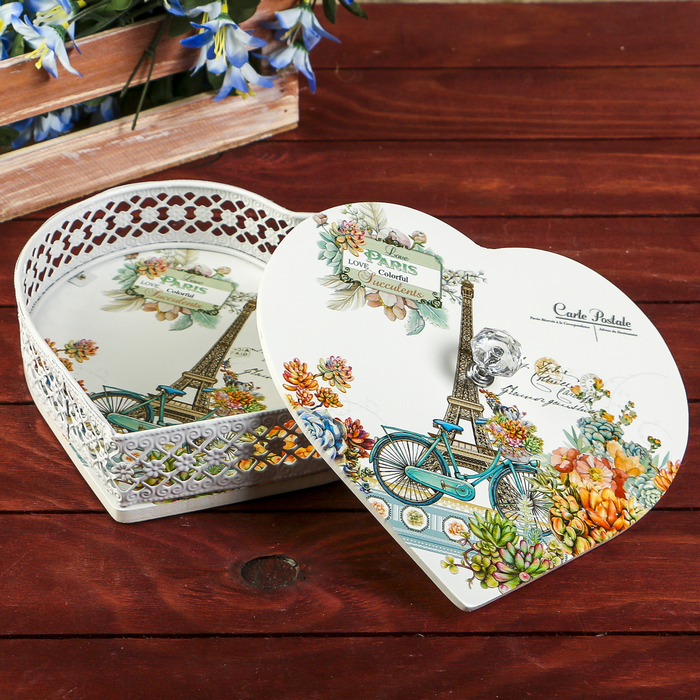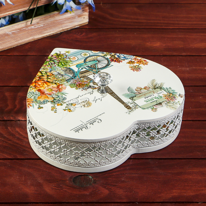 Шкатулка дерево, металл "Велосипед, цветы, башня" сердце 8х21х21 см