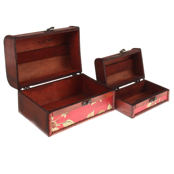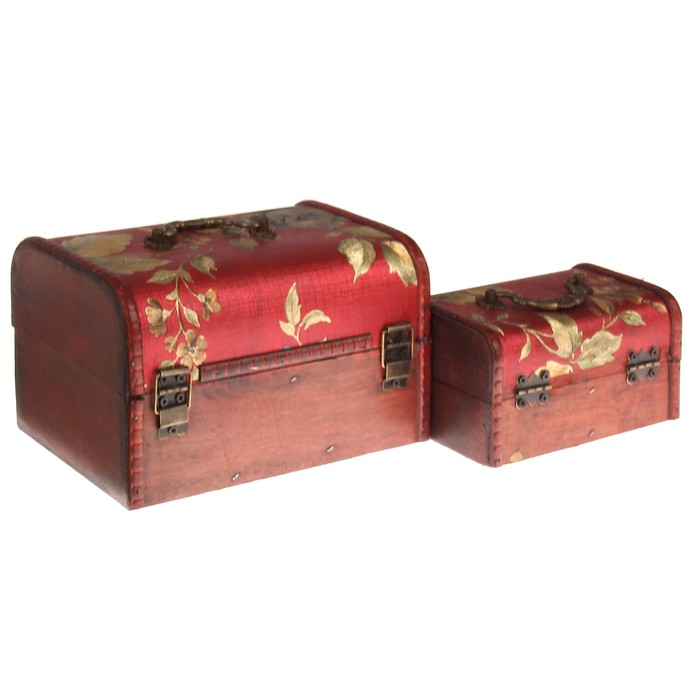 Шкатулка дерево сундучок "Цветы на красном" набор 2 шт 8,5х15,5х10,5 12х19,5х14,5 см