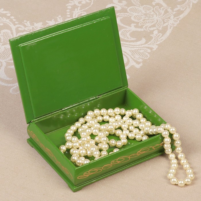 Шкатулка «Девушка с полевыми цветами», 10×14×5 см, зелёная, лаковая миниатюра