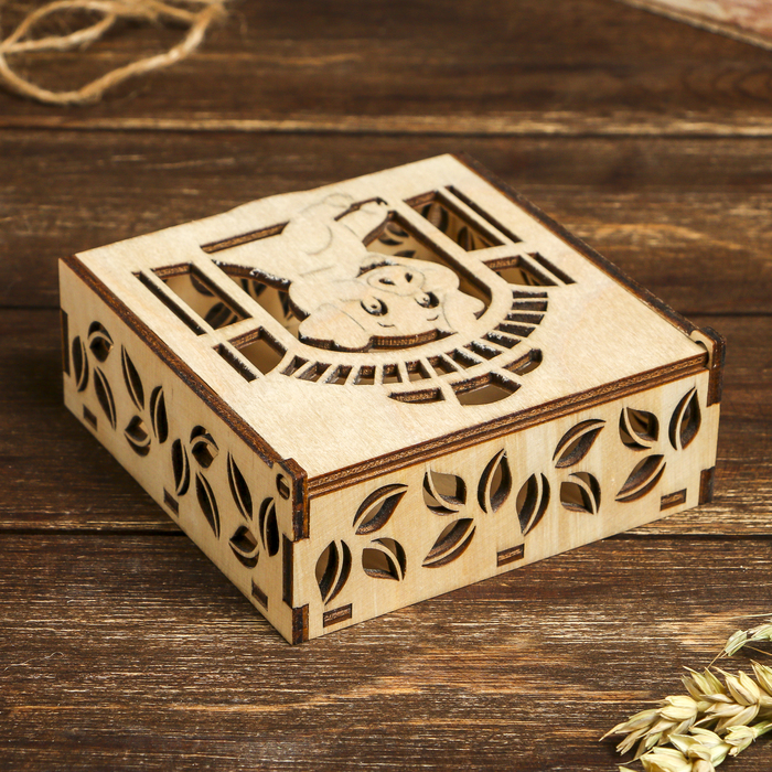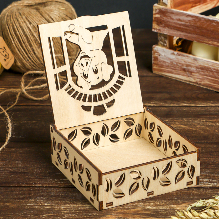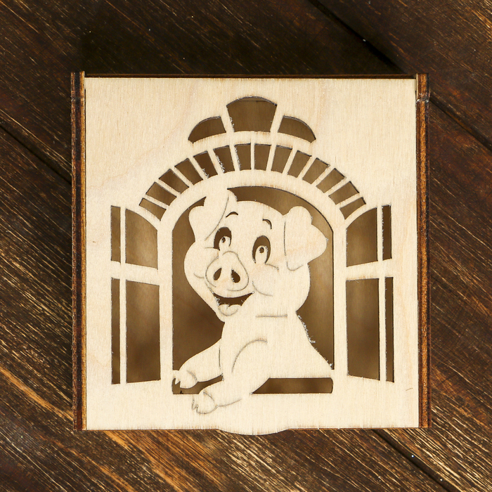 Шкатулка для декора "Поросенок в окошке" из фанеры 11х11х4,5 см (набор 6 деталей)