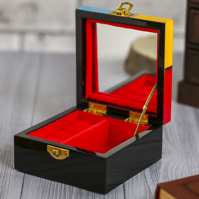 Какая женщина не любит украшений? Кольца и браслеты, серьги и цепочки, колье и броши – всего не перечислить! Всему этому великолепию просто необходимо достойное обрамление! Такое, каким с успехом может стать элегантная шкатулка для украшений с зеркалом "Цветные облака". Мягкий материал, которым она покрыта изнутри, убережет положенные в нее украшения от ударов о стенки, а небольшое зеркальце на внутренней стороне крышки позволит примерить любимые сережки, не вставая с места. Аксессуар, который не оставит равнодушной настоящую модницу!