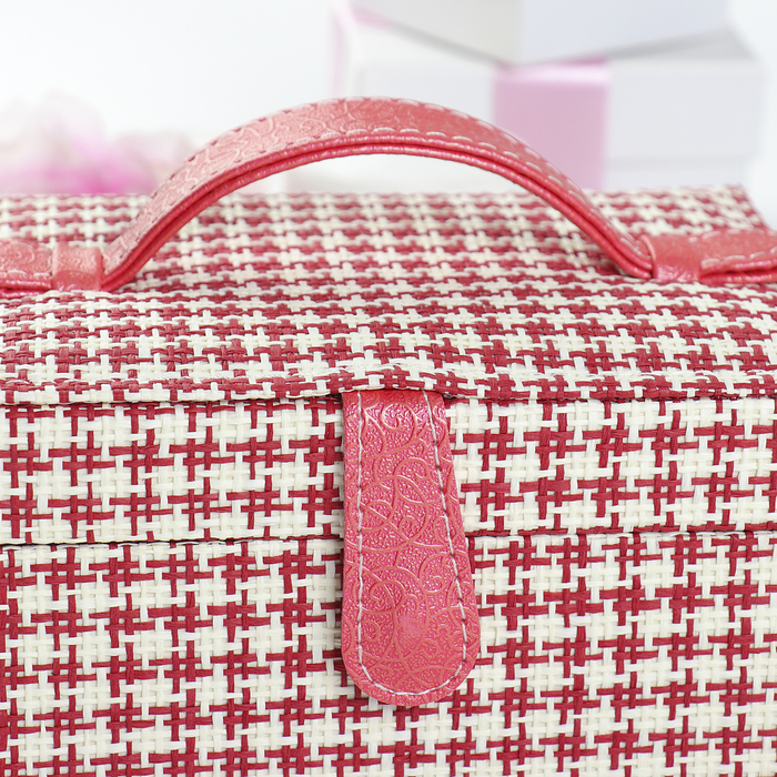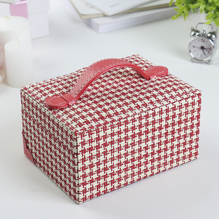 Шкатулка кожзам для украшений "Клеточка" красная 9х17х13,5 см