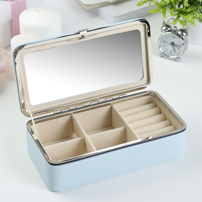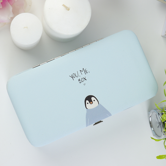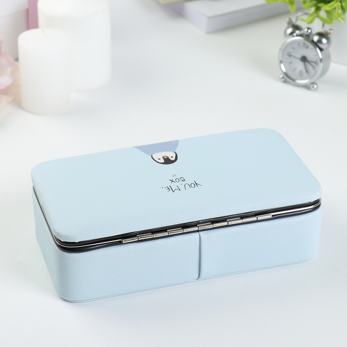 Шкатулка кожзам для украшений "Пингвин" голубая 5,5х18,5х9,5 см