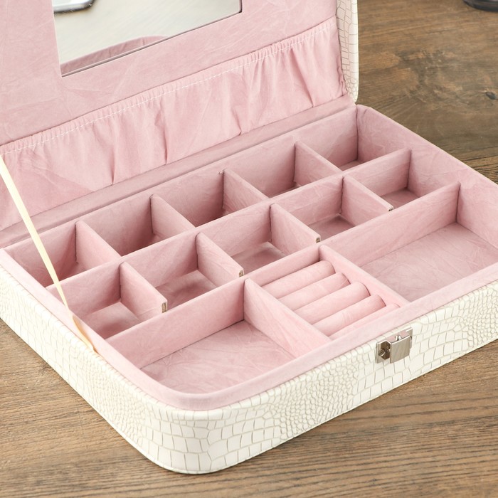 Шкатулка кожзам для украшений "Рептилия" сливочная глянец 6х28,5х18,5 см