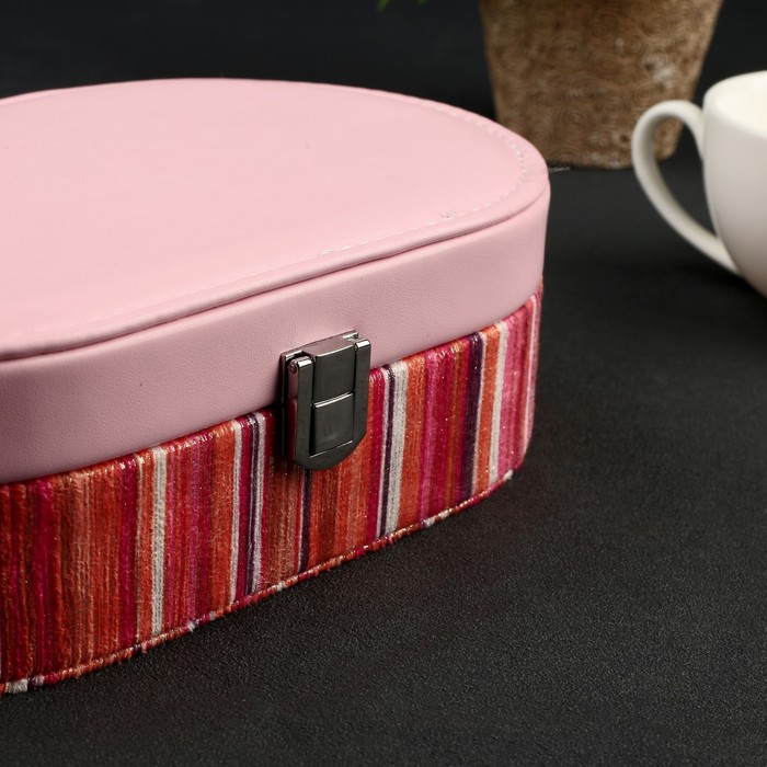 Шкатулка кожзам для украшений "Розовая с яркими полосками" 6,5х22,5х14 см