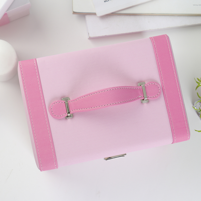 Шкатулка кожзам для украшений "Розовые цветы на розовом" 13,5х23х16,5 см